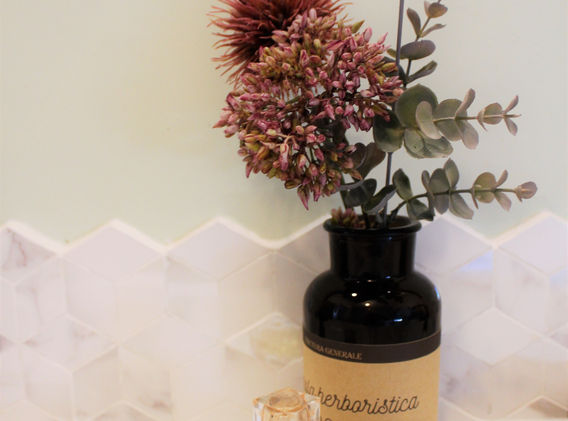 Rénovation et décoration d'une salle de bains ancienne : faïence en grands carreaux d'un blanc pur, pour le côté moderne, associée à une mosaïque de petits marbres aux tons légers pour habiller. On ajoute un meuble double vasque ébène, et l'on obtient une pièce pleine de caractère et de lumière !